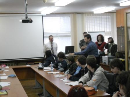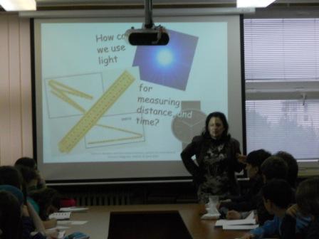 Ученицима се затим обратио помоћник директора Борис Лаштро, који је одржао презентацију на тему коришћења оптичких средстава за мерење дужине и времена.