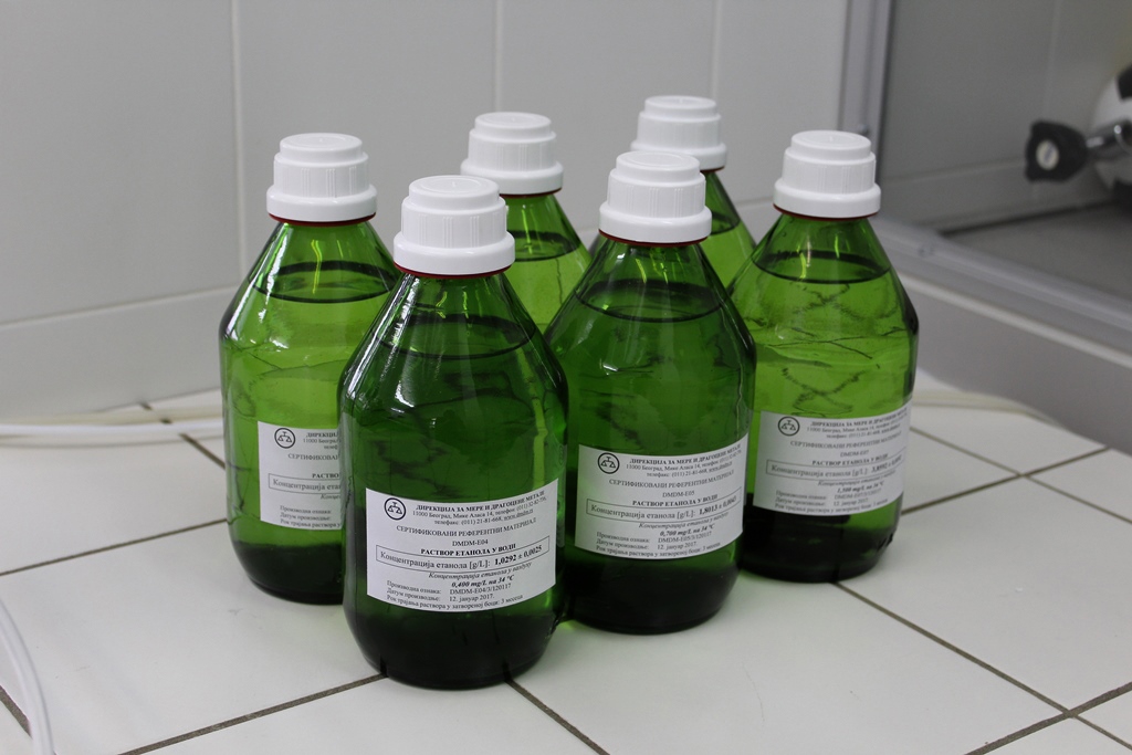 Дирекција за мере и драгоцене метале (ДМДМ) од 2017. године производи сертификоване референтне материјале (SRM – e) – растворе етанола у води, за потребе калибрације (подешавања) и/или оверавања мерила (етилометара).