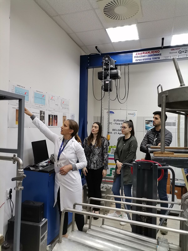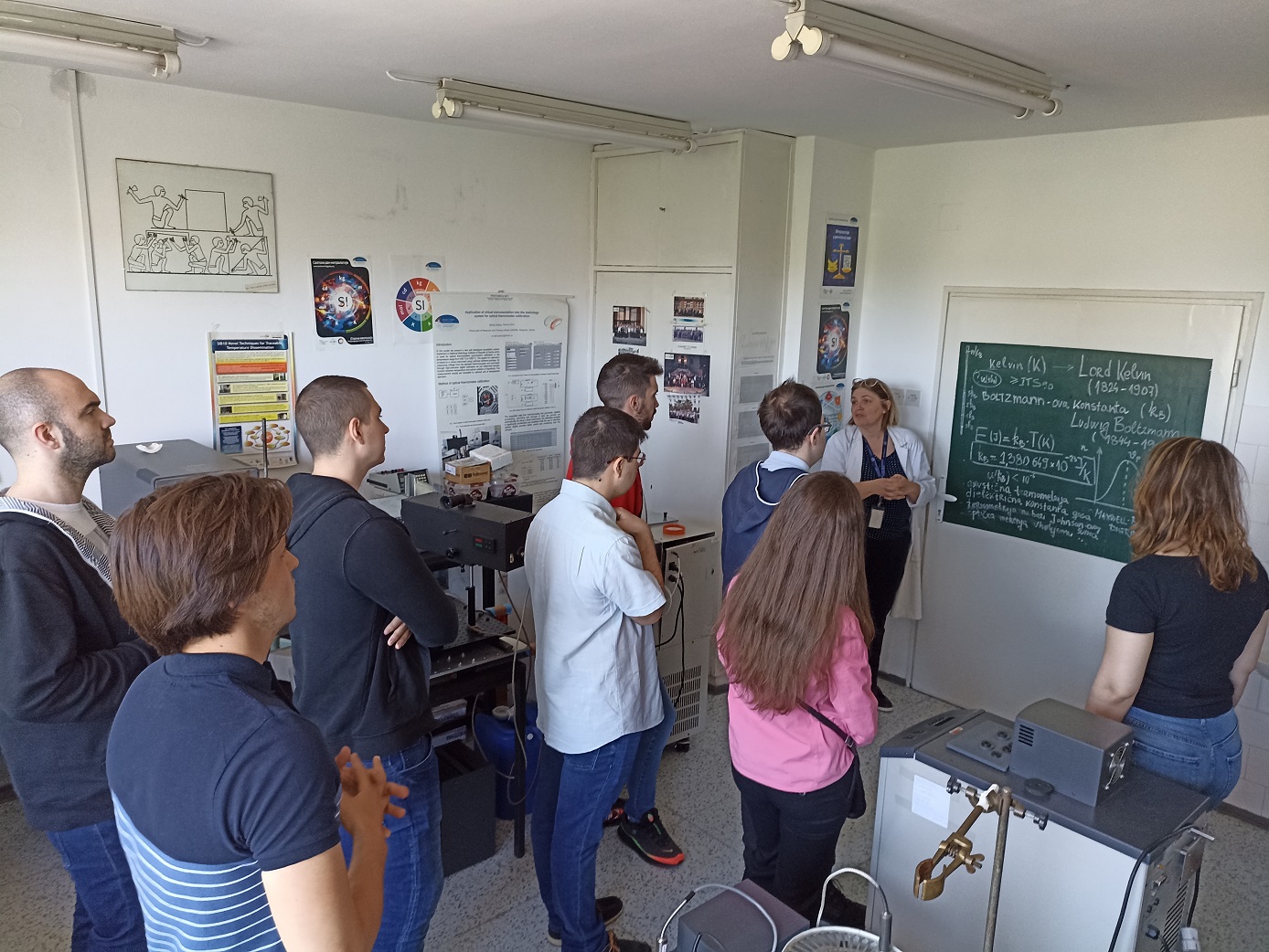 Стручна посета укључила је обилазак лабораторија ДMДM у којима се чувају национални еталони SI јединица, примењују најтачније методе еталонирања за преношење вредности SI јединица до крајњих корисника и омогућава успостављање везе са међународним еталонима. Такође, овом приликом студенти су се упознали са методама мерења, еталонском и мерном опремом у лабораторијама за испитивање и еталонирање. Посета је обухватила обилазак лабораторија за температуру, велике запремине, дужину, масу и акустику.