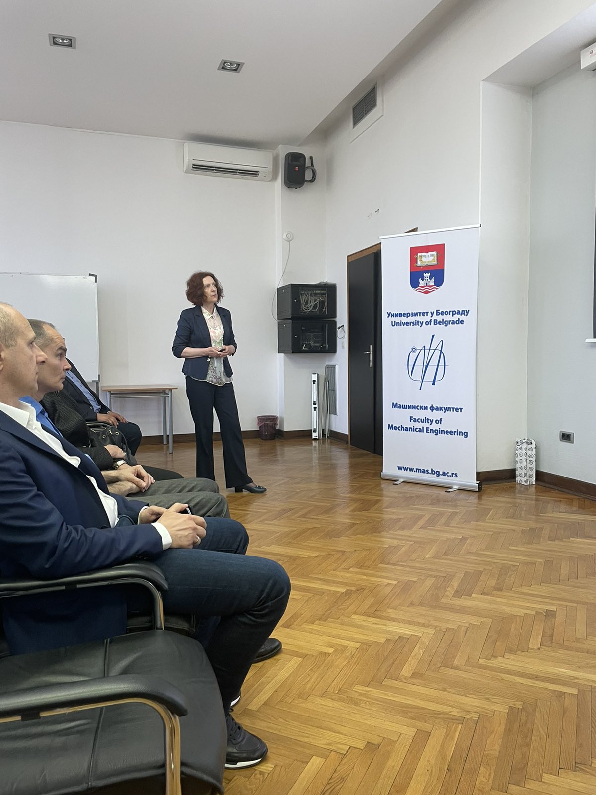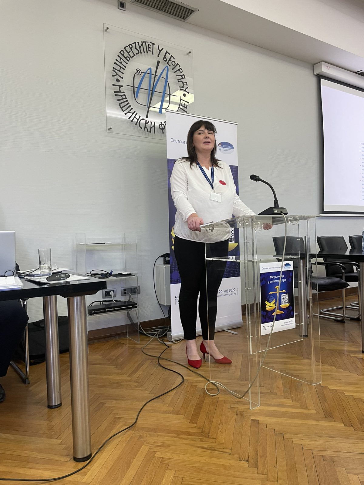 У име домаћина присутнима се обратила проф. др Драгослава Стојиљковић, продекан за научноистраживачку делатност на Машинском факултету, која је указала на велики значај метрологије у примени и изразила задовољство успешном дугогодишњом сарадњом Машинског факулета и ДМДМ која се реализује кроз различите активности на основу уговора о сарадњи.