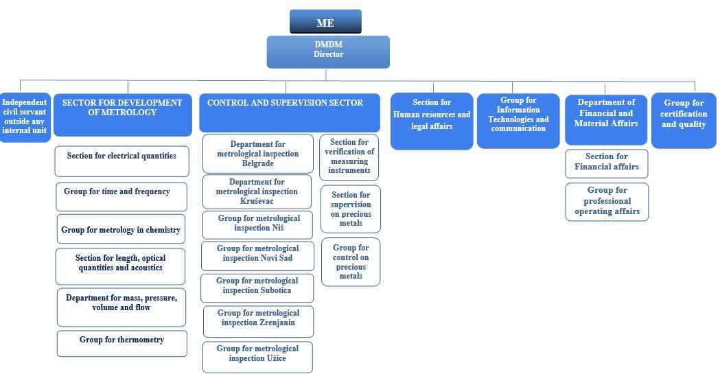 Manages and organizes the work of the Directorate; coordinates the work of internal organizational units; participates in the work of international and regional organizations for metrology; monitors, researches, and studies the global development of metrology for its improvement in the Republic of Serbia. |