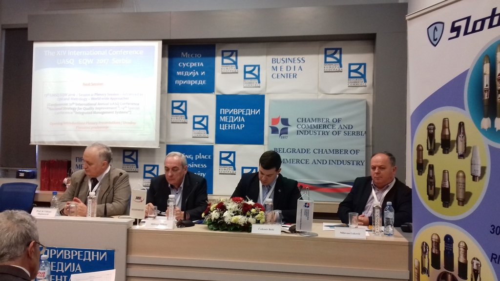 The Conference was chaired by Mr. Dr Vidosav Majstorović, PhD, UASQ Chairmen; Mr. Čedomir Belić, Acditng Director of Directorate of Measures and Precious Metals; Mr. Milivoje Miletić, Acting Director of Belgrade Chamber of Commerce and Industry and Mr. Milovan Luković, „Sloboda Čačak“ company.