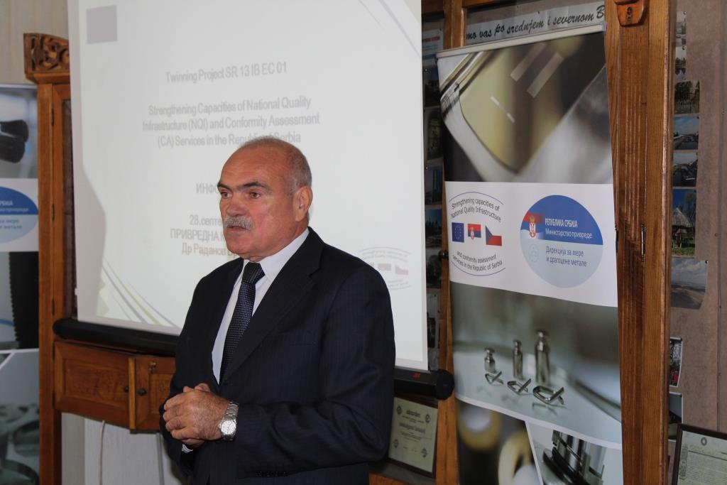 Before an Info session, participants were welcomed by Mr. Zoran Markovic, Regional Chamber of Commerce and Industry of Nišava, Pirot and Toplica Administrative District. He pointed the importance of this event. Dr. Branka Radanov PhD, Advisor for Scientific and Legal Metrology of Directorate of Measures and Precious Metals (DMDM) and Karel Žáček, Standing Advisor for Twinning in the Republic of Serbia said a few introductory words as well.