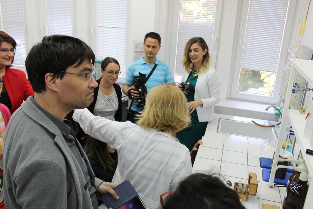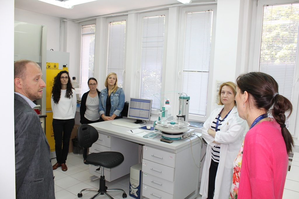 Students were introduced with basic responsibilities of DMDM and its tasks and duties in the field of metrology which are in function of management of economic, scientific and other organizations as well improvement of the quality of life of all people. After presentation of promo film about DMDM the study visit continued with a tour through laboratories. In laboratory for physical-chemistry measuring instruments to students were demonstrated verification of aerometers.