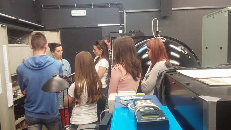 Traditionally within the activities to mark the World Metrology Day on May 20, we were visited by our dear guests, the Students of the Faculty of Mathematics University of Priština from Kosovska Mitrovica. Students of the second year within teaching from subject Metrology and measuring results processing with Branko Drljača, Assistant Professor had opportunity to be introduced with the importance and history of Metrology in Serbia and work of National Metrology Institute (DMDM). Study visit was continued visiting laboratories for temperature, DC voltage, time, frequency, photometry, large volumes, length, acoustics and mass where Metrologists presented them realized calibration methods and research projects the DMDM participates in.