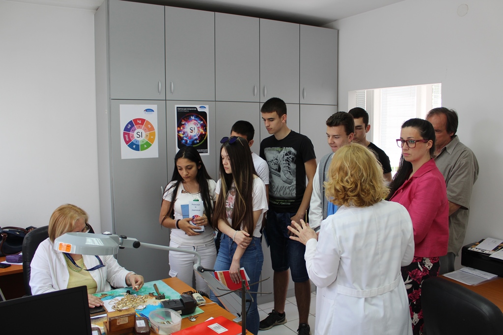 Within Days of open doors on the occasion of marking the 20th May - the World Metrology Day pupils of third year, department jeweler of polytechnics school “Polytechnics-school for new technologies” from Zemun visited Directorate of Measures and Precious Metals. After they were introduced with history, place, role and importance of Directorate, study visit was continued with a tour through Laboratory for precious metals articles control. During the visit, pupils had a chance to get familiarized with method of hallmarking and determination of fineness degree of precious metals articles.