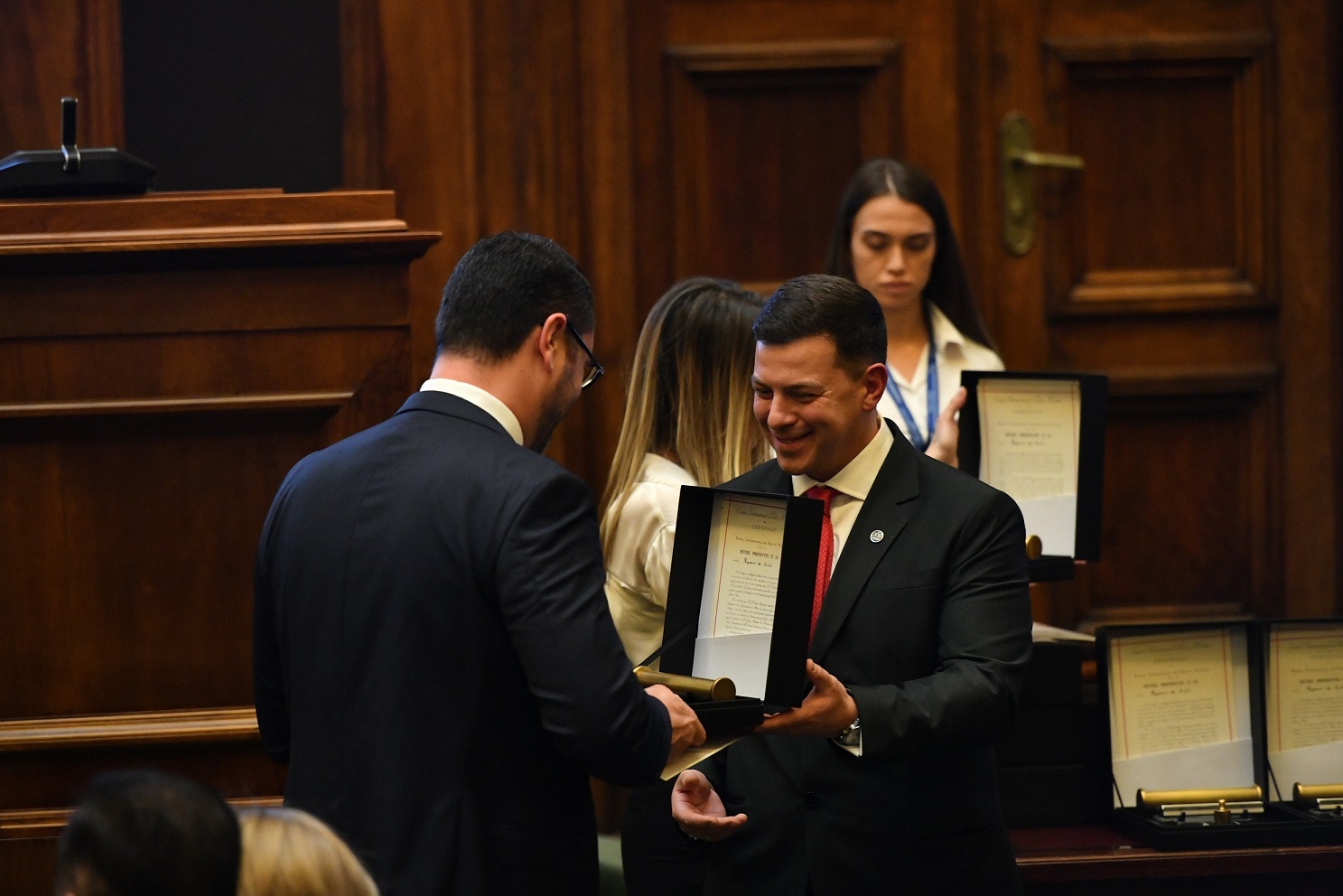 After the ceremony, guests had the opportunity to see national standards obtained at the end of the 19th century, archival metrological materials, as well as objects from that period, which were exhibited in the hall of the National Assembly. A cocktail was arranged for all guests.