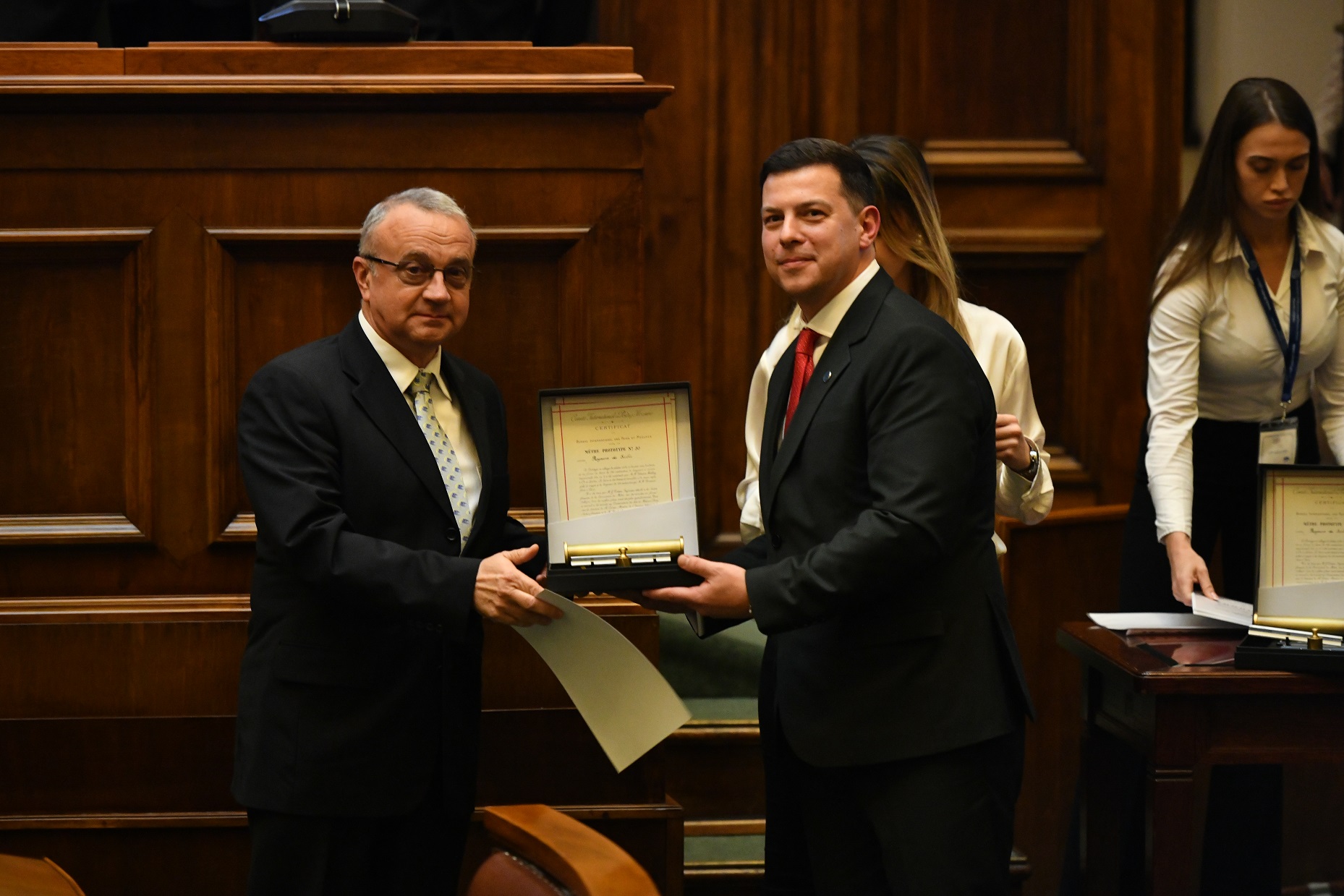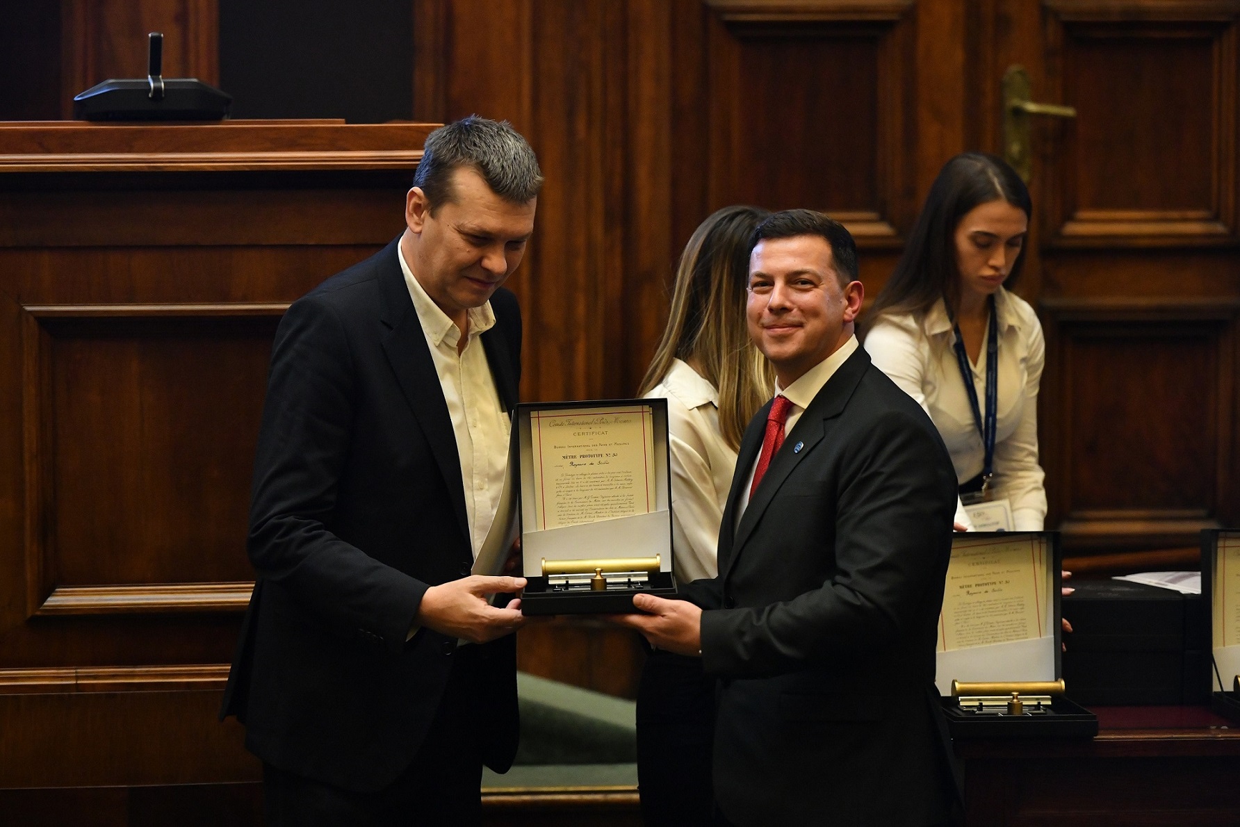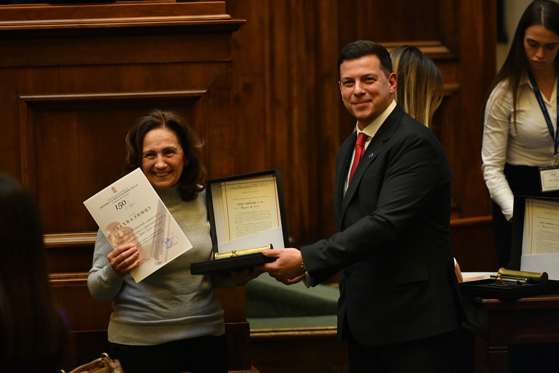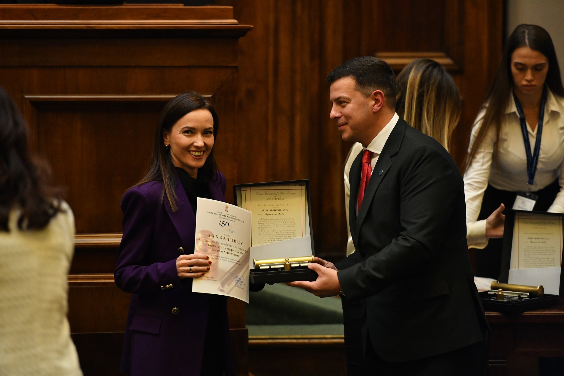 The previous day, distinguished guests attended the ceremonial academy marking 150 years of metrology in Serbia, which was held in the House of the National Assembly of the Republic of Serbia. On that occasion, director Cedomir Belic awarded them certificates of appreciation for successful cooperation and contribution to the work of DMDM.