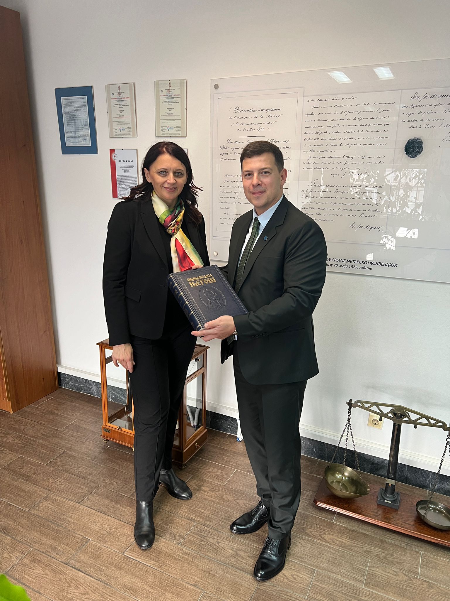 The ceremonial academy was attended by the Minister of Science, Technological Development and Innovation, Dr. Jelena Begovic, the Minister of Internal and Foreign Trade, Tomislav Momirović, representatives of national metrology institutes from Bosnia and Herzegovina, Montenegro and Bulgaria, as well as numerous friends and associates of the Directorate for Measures and Precious metals.