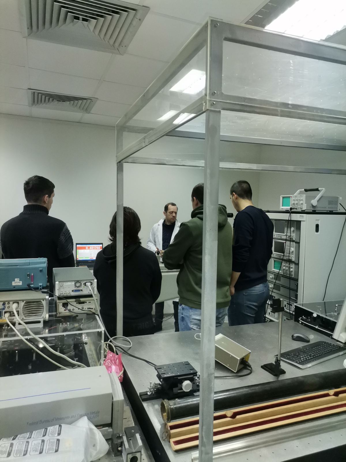 The visit continued with a tour of the laboratories, a discussion about measurements, benchmarks and measurement units. In the mass and length laboratory, the students were shown scales, sets of weights, wooden meters and measuring rods, and the testing and calibration procedures were explained.