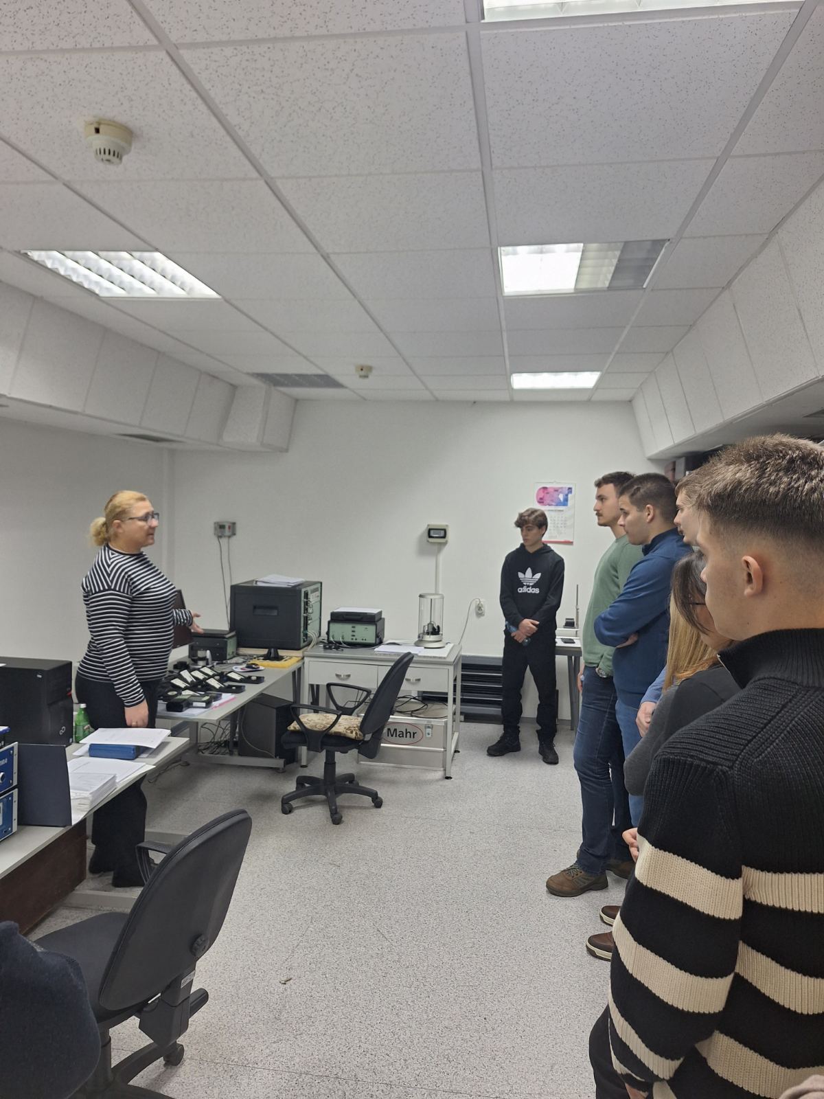 Stručna poseta uključila je obilazak laboratorija za masu, akustiku, električne veličine i termometriju, gde su studenti imali prilike da se upoznaju sa konkretnim poslovima i zadacima svake laboratorije, kao i sa nacionalnim etalonima, koji se čuvaju, održavaju i unapređuju u tim laboratorijama.