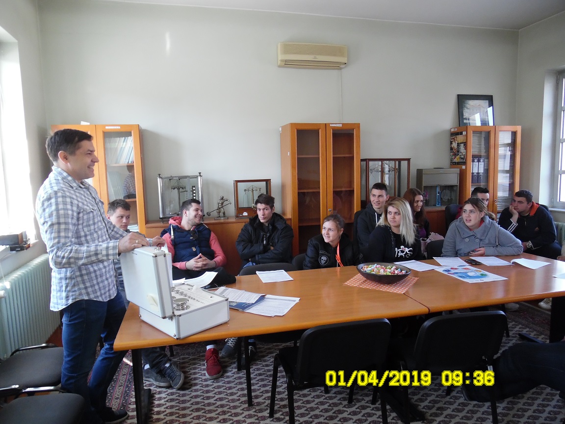 Studenti Visoke tehničko-tehnološke škole strukovnih studija u Kruševcu tokom studijske posete Odseku za kontrolu i nadzor Kruševac su se upoznali sa pojmom, razvojem i značajem metrologije, nadležnostima Direkcije za mere i dragocene metale.