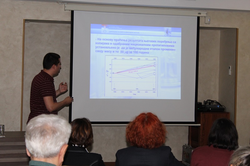 Kustos Muzeja nauke i tehnike, Saša Šepec, predstavio je gostima burnu istoriju nacionalnog etalona kilograma, sa posebnim osvrtom na njegovo interesantno putovanje u burno ratno vreme, kao i njegov istorijski i ekonomski značaj.